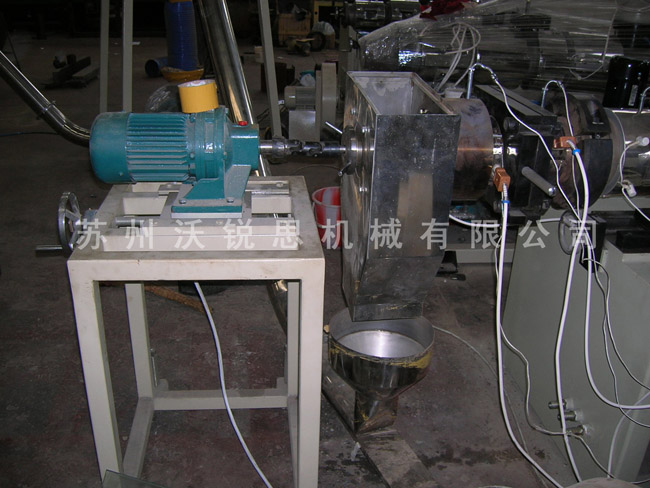 2.多孔模板(出料板)孔数较多,(***多达一万个),切刀可髙速旋转,因此产量高,用螺杆直径∮460毫米,螺杆转速110转/分,电动机功率2200千瓦的挤出机制造聚乙烯粒料,生产能力达15吨/小时。