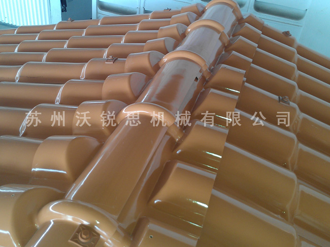 WRS-沃锐思机械生产的合成树脂瓦设备,生产的合成树脂瓦是运用高新化学化工技术研制而成的新型建筑材料,具有重量轻、强度大、防水防潮、防腐阻燃、隔音隔热等多种优良特性,普遍适用于开发区平改坡、农贸市场、商场、住宅小区、新农村建设居民高档别墅、雨篷、遮阳篷、仿古建筑等。